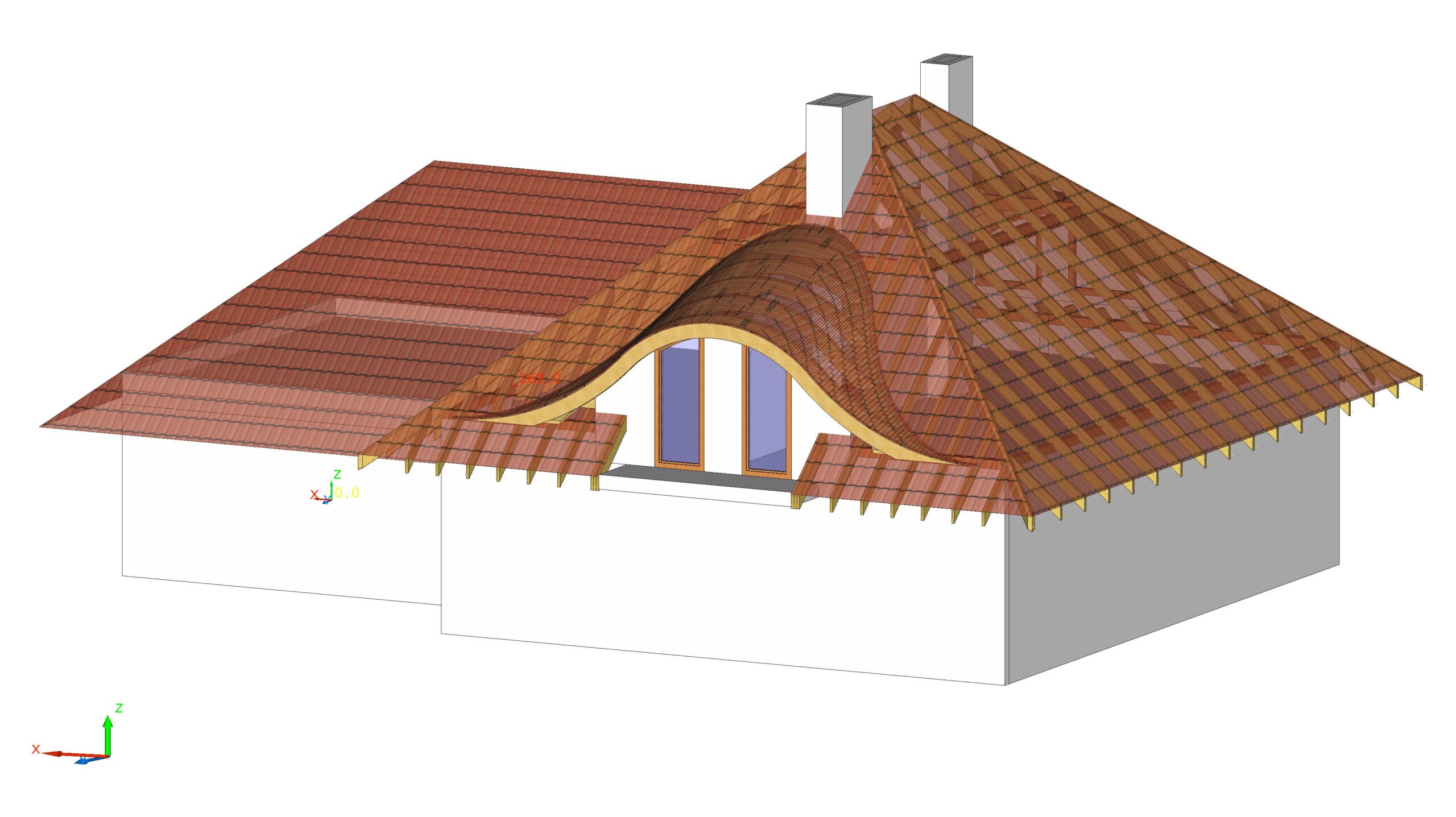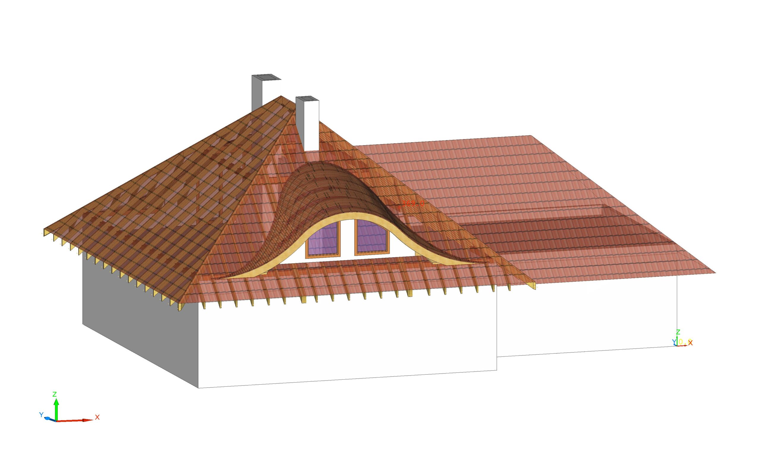 W projekcie znajdują się dwa wole oka o szerokości ok 9.5m. Jedno znajduje się nad wejściem, na elewacji frontowej. Drugie, wraz z wyjściem na balkon na elewacji tylnej. Prócz wolich oczu na poddaszu znajdują się również dwie dwuspadowe lukarny.